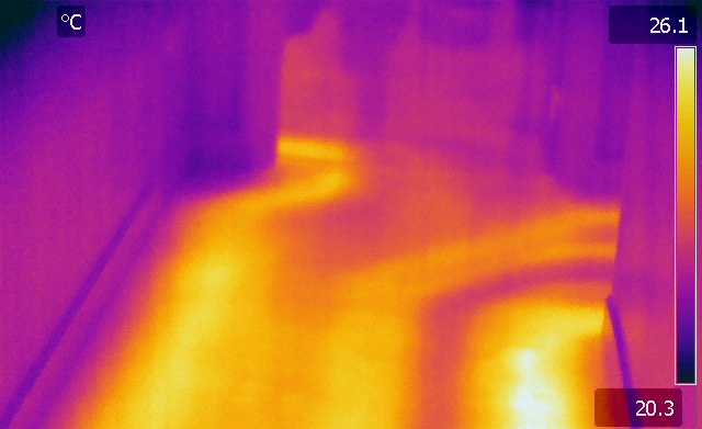 ISCE dispone de la tecnología necesaria en equipo de termografia que permite ver la temperatura de una superficie con precisión sin necesidad de tener contacto con la superficie. Por medio de método de termografía infrarroja se pueden detectar fugas de agua en losas radiantes, cañerías de agua caliente, etc.